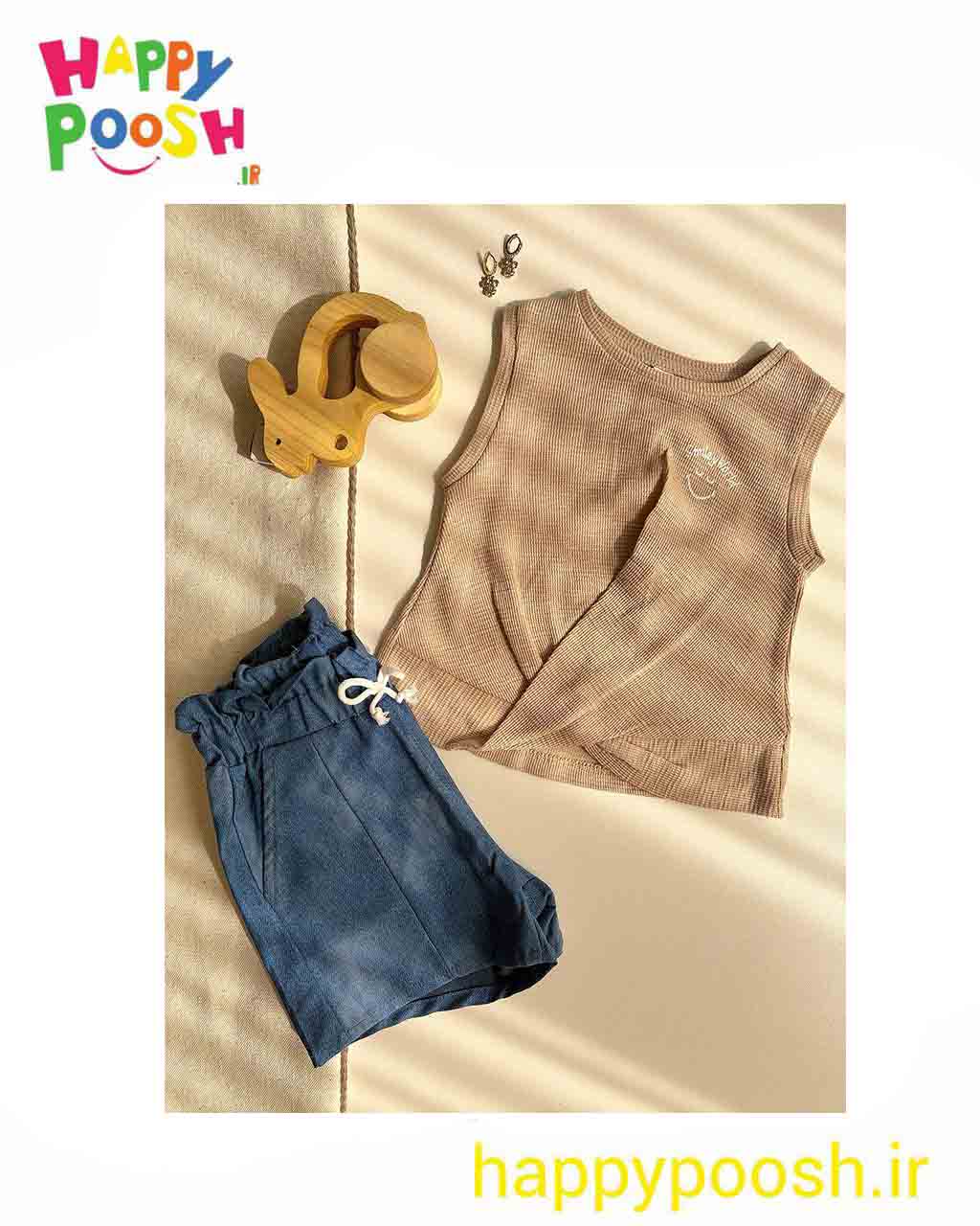 این ست دوستداشتنی با طراحی ساده و رنگهای شاد، انتخابی عالی برای روزهای گرم است. تاپ بیسکوئیتی فوقالعاده نرم با آستین کوتاه و شلوارک جین کاغذی انعطافپذیر، هماهنگی دلنشینی ایجاد کرده تا فرزندتان با آزادی حرکت و حس راحتی، لحظات شاد و پرانرژی داشته باشد.