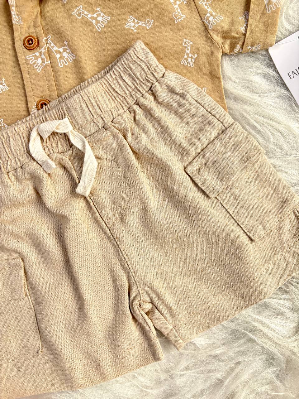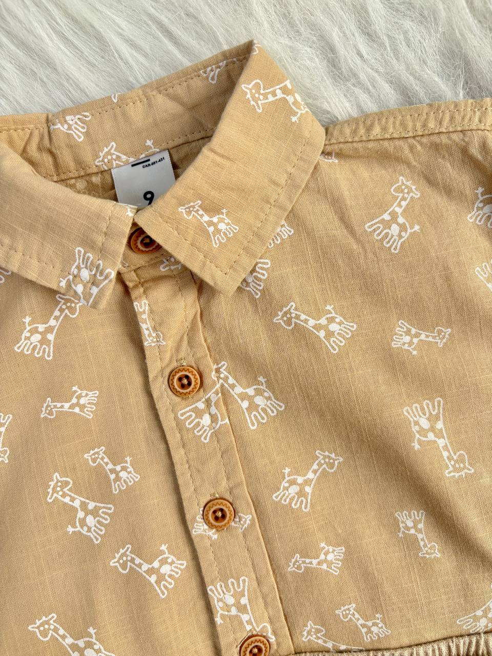 دو تیکه پسرانه پیراهن سفید پیراهن شلوارک کرم دایناسور