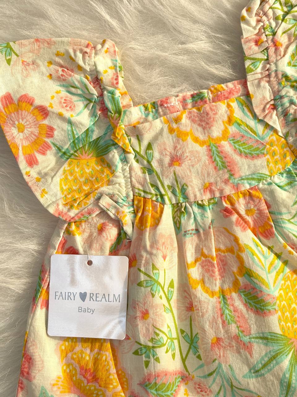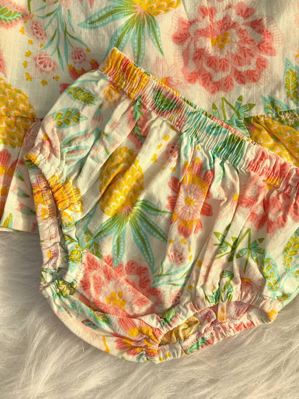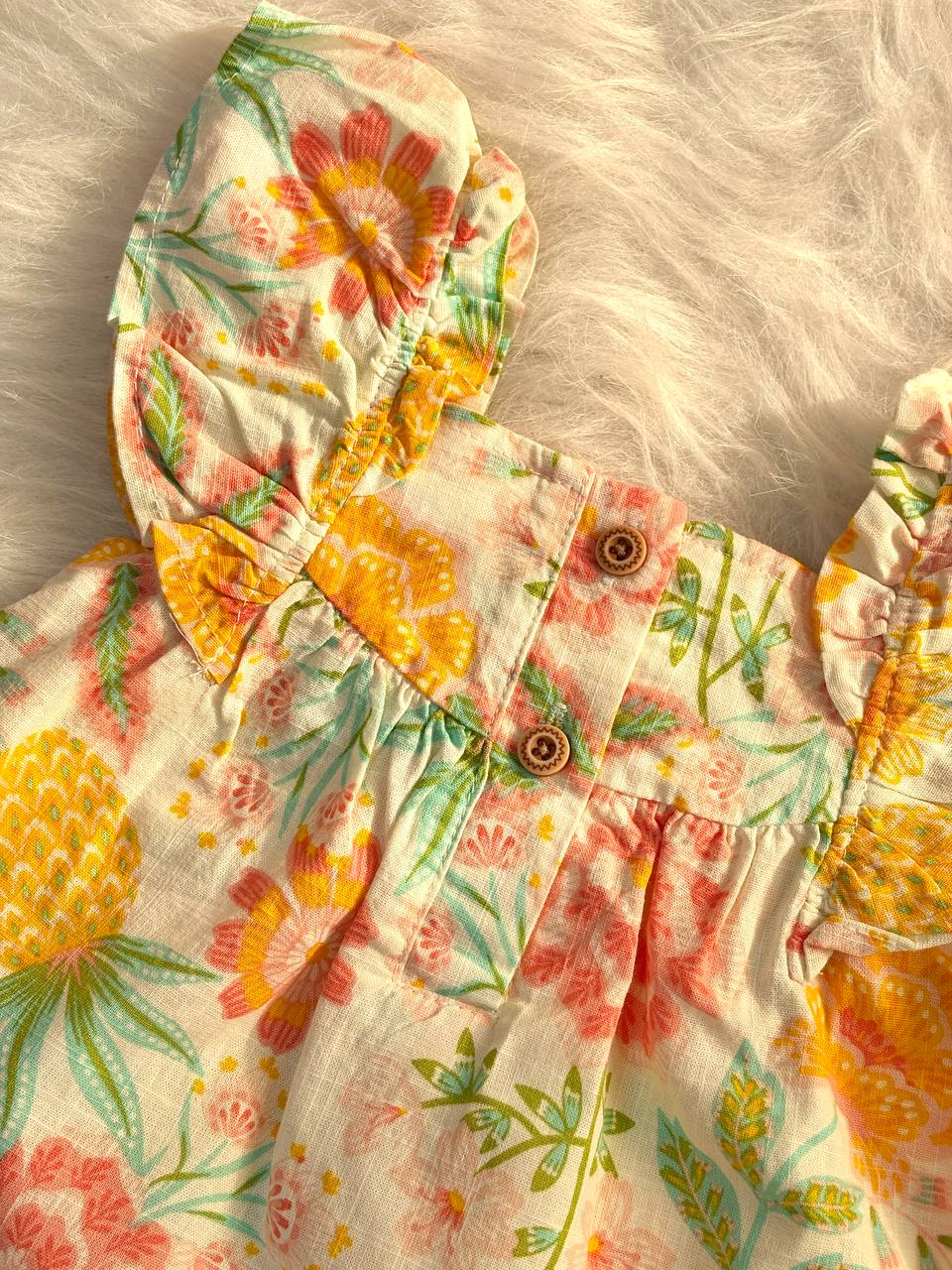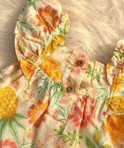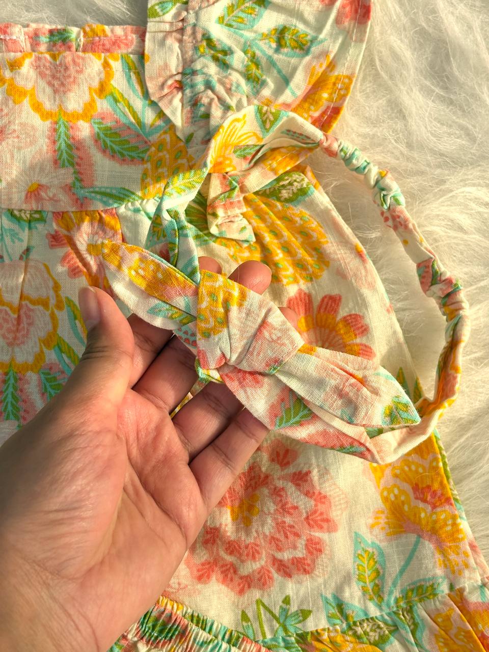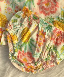 سه تیکه دخترانه پیراهن گلدارصورتی نارنجی