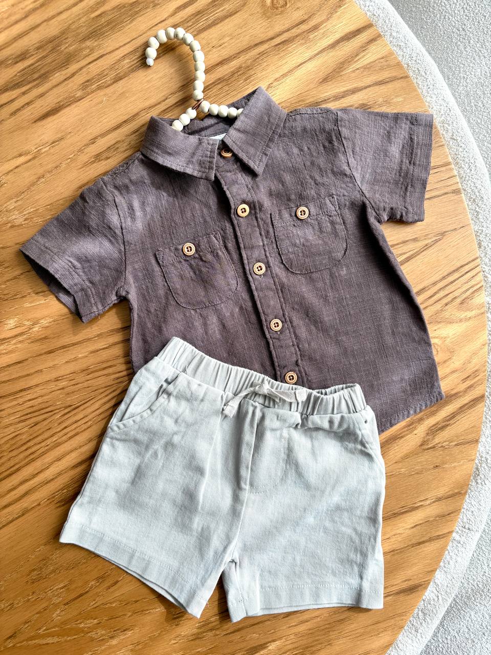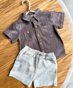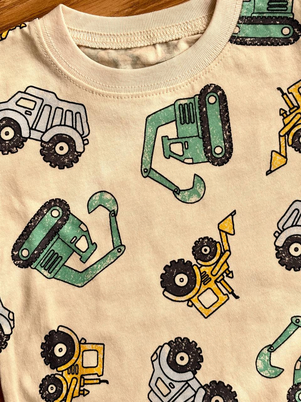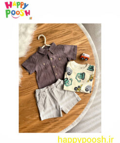 سه تیکه پسرانه پیراهن شلوارک تیشرت طرح تراکتور
